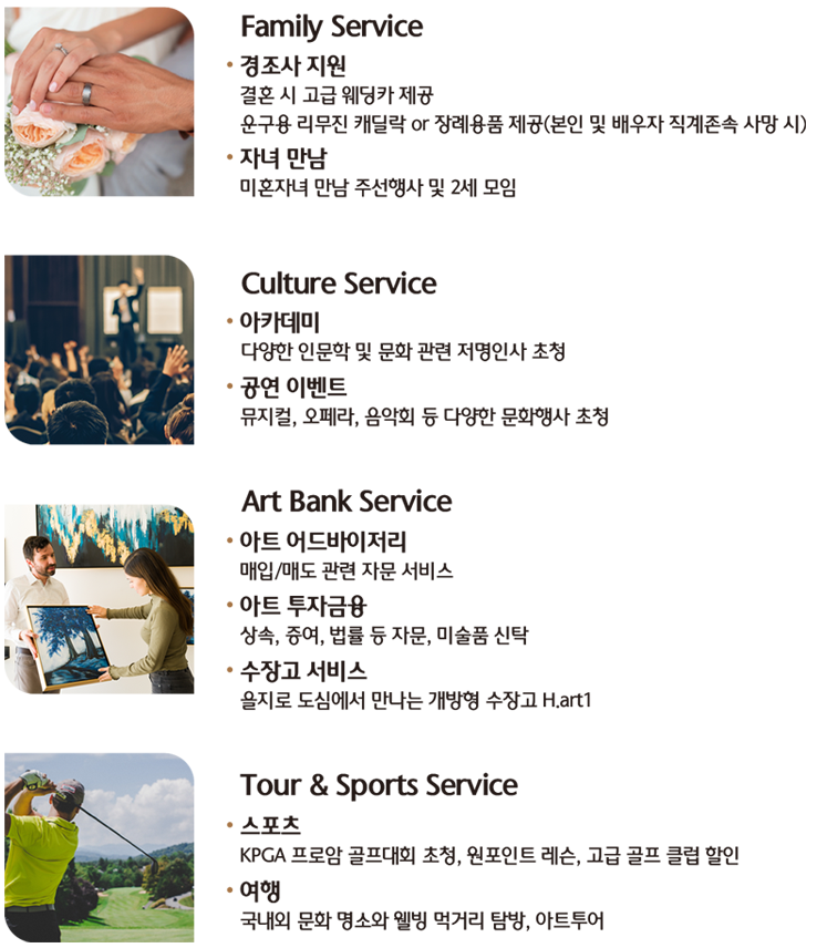 손님 곁에서 손님의 자산, 가족, 건강, 문화 등 금융&라이프 전반을 관리하며 더 행복하고 풍요로운 인생 포트폴리오를 제안해드립니다.